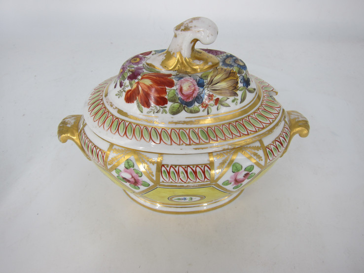 There is a story about the version with the larger flower reserves, which is extremely rare: apparently there are a few of these items in Buckingham Palace, and it is thought that a large service was made as a sample for the Prince Regent, but never bought; the pieces were then scattered. I have only had one bowl like this, but heard this story from a collector who purchased a small tea service in this pattern accompanied by this story, which came from a reputable source. Who knows?