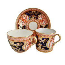 Of course we need tea with our lunch... I already sold the large tea service in maroon and gilt by Barr Flight & Barr, but I still have some trios. They have a bit of rubbing as the factory was not capable yet of overlaying the maroon ground in a way that wouldn't rub off. So I would say the rubbing is not a flaw, but a sign of authenticity of that era! Another choice is the "dollar pattern" trio by Spode... one of the best patterns I think! And it has of course nothing to do with dollars - those strange shapes are actually Chinese trees of life.