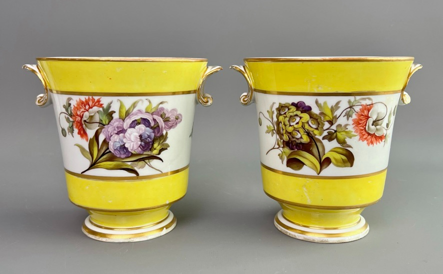 William Billingsley, born in 1758, was a brilliant but troubled man, leaving behind a trail of debts (and tears) alongside some very important innovations in British porcelain. Encouraged by his mentor, the king of landscapes Zachariah Boreman (who I wrote about a few weeks ago), Billingsley developed a free, flowing style of flower painting, presenting flowers playfully from all perspectives with shiny highlights. These highlights were a novelty at the time: instead of painting around a white spot in order to create the effect of light on a petal, Billingsley applied his paint thickly and then wiped it out, creating a stronger, wet-looking effect. This, as well as the flowing style, was to become the quintessentially British style of porcelain painting, contrasting with the more restrained Continental style.