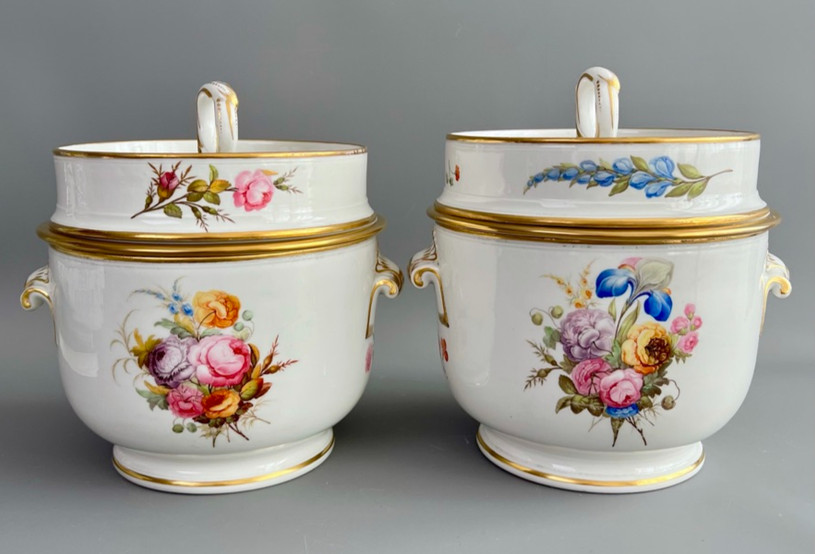 Billingsley, however, had bigger dreams than flowers; his true passion was making porcelain. English porcelain was still rather crude compared to the fine Continental porcelains, and Billingsley became obsessed with finding a British equivalent. That's why he started the Pinxton factory in Derbyshire, which produced some beautiful porcelain (see the tea service from last week) but, due to the high kiln wastage, the business couldn’t survive. He then ran a decoration studio in Mansfield, Nottinghamshire (see these two plates I have available), but mysteriously disappeared. In fact, he had walked hundreds of miles and renamed himself William Beeley to escape creditors, finally reappearing penniless at the Flight & Barr factory in Worcester in 1808, where he was hired to improve the factory’s porcelain body.