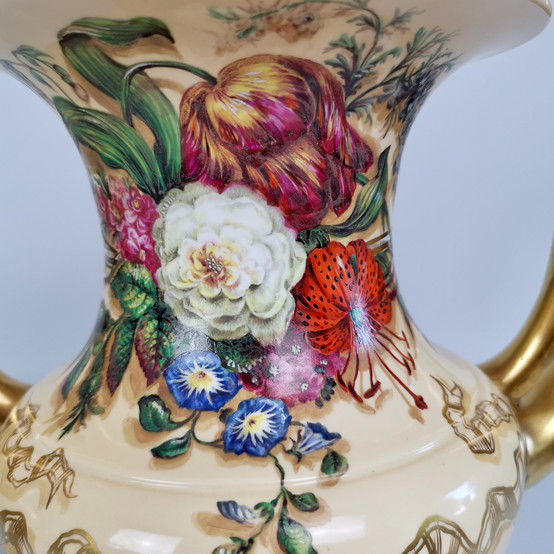 Back to porcelain... when English flower painters started to explore all the beautiful ways they could decorate porcelain, the tulip played an important role. But not just the boring single-coloured stiff tulips we see in the supermarket: proper Dutch tulips, with amazing colours and shapes, flowing and with gaping open mouths and oh so elegant and free. That's the tulips I grow and nothing makes me happier.